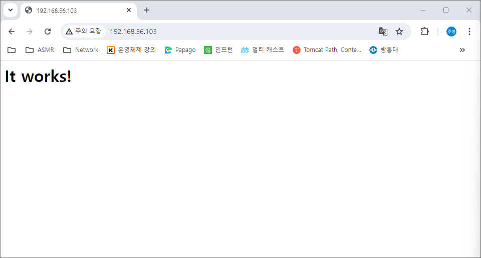 ${호스트 PC(도커를 설치한 가상 서버)의 IPv4 }:${컨테이너 생성 시 바인딩한 port 번호 } 를 입력해주면 아래와 같이 출력된다.